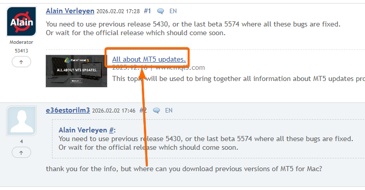 This topic will be used to bring together all information about MT5 updates process. This is NOT for chitchat...