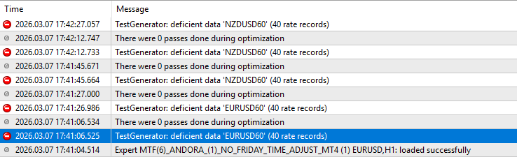 When I run my backtest I get the following errors. I am connected to the correct data source.