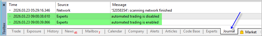 ES 0 23:02:22.389 Experts automated trading is disabled