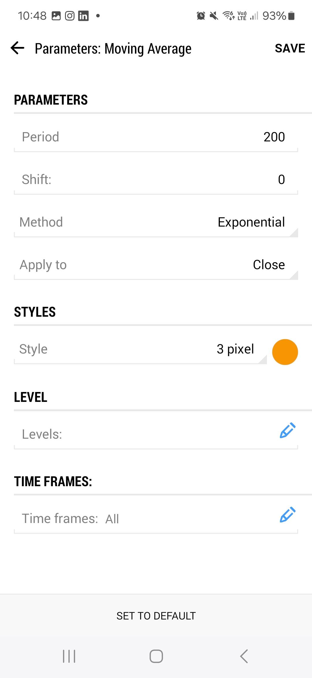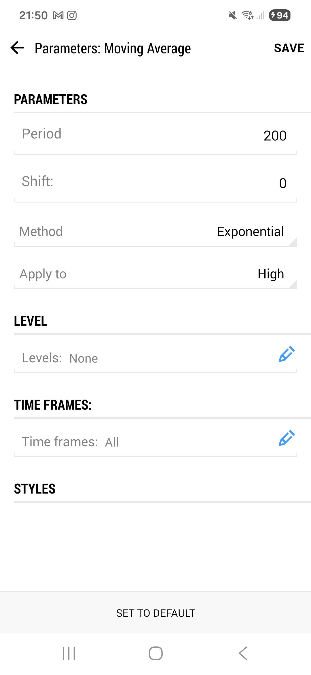 on my moving averages: it's standard redline color, somehow the Color style / tickness of lines has dissapeared on my android mt5?