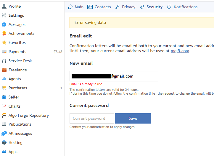 But today it still won't let me change the email from @live to @gmail. It says "Email is already in use."