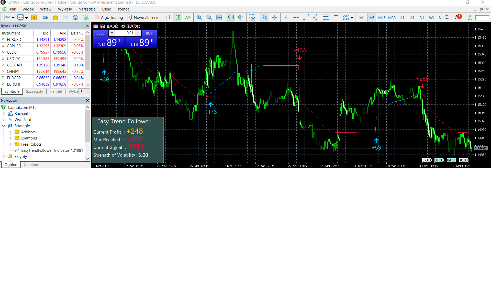 Hello, i have easy trend indicator. ( attached picture ) It only write sell/buy signal does not make auto trading. Is there a way to make it auto ?Best
