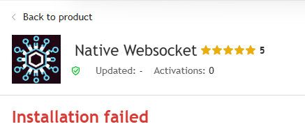 After purchasing Native Websocket, it displays an installation failure. How can this be resolved?