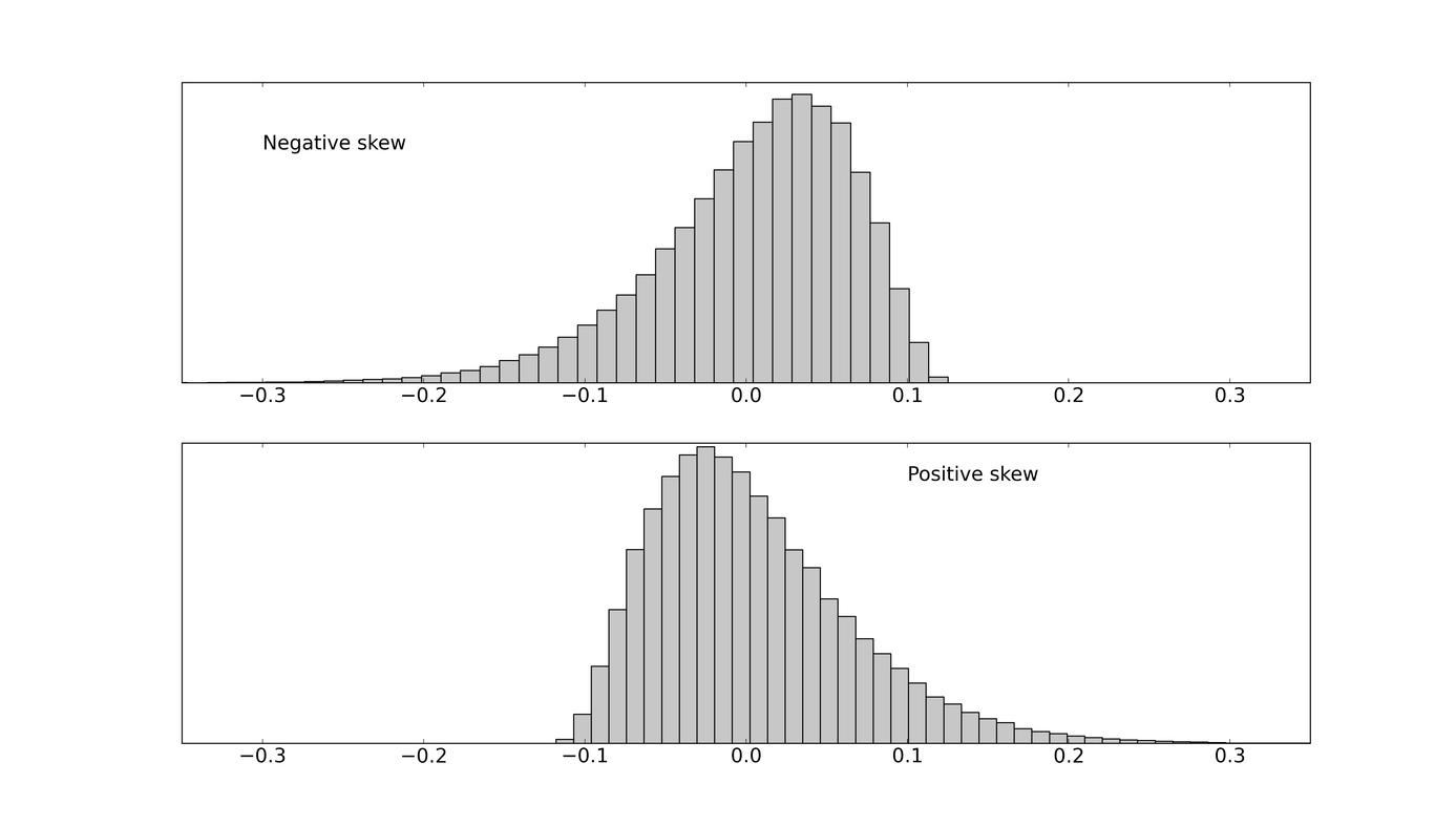 You can see that a positive skew trading method has many small losses but limited in magnitude. Often this translates in low win rate, under 50% and small amount losses in % from the account balance. To the right is opened to big gains which will cover the losses and also will generate profits. A trading system with negative skew will do the opposite.