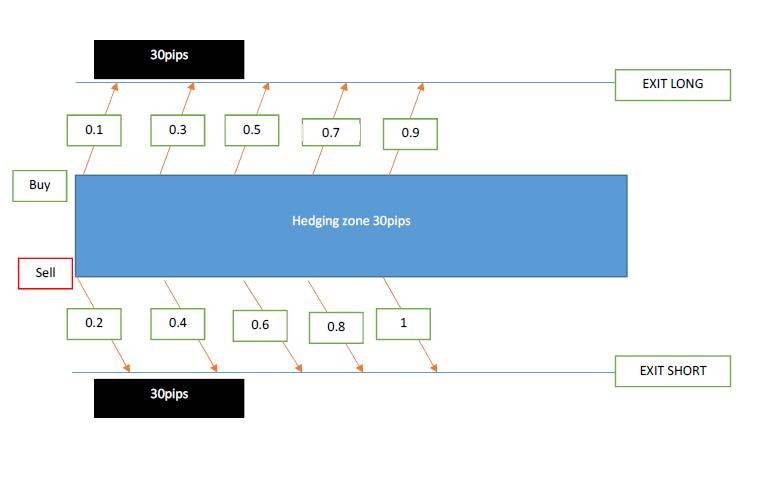 2 nd trade is automated by the EA and the subsequent trades until the TP/SL is hit 30pips outside/either side of the recovery zone.