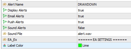 Time: EA should have a cool down of 30 seconds. Once drawdown is reached and alerts are send, wait 30 seconds to send another set of alerts if conditions still apply.