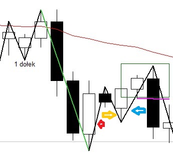 -When the next candle has a lower high and a lower low than the previous candle, the trend is drawn downwards
