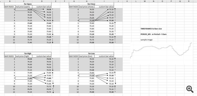 I want the example indicator I will provide to work not as a Timeframe, but by using bar numbers and calculating.