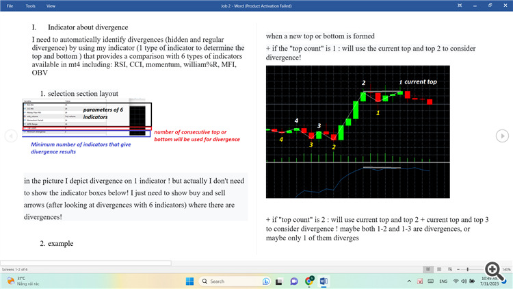 I need to automatically identify divergences (hidden and regular divergence) by using my indicator (1 type of indicator to determine the top and bottom ) that provides a comparison with 6 types of indicators available in mt4 including: RSI, CCI, momentum, william%R, MFI, OBV
