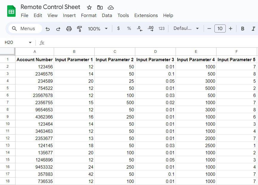 1. The EA must source its parameters from the defined Google Sheet/database.
