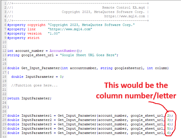 The Expert must search for the Account Number on the Google Sheet, and use the adjacent cells of that row to inform parameters of the Expert Advisor.