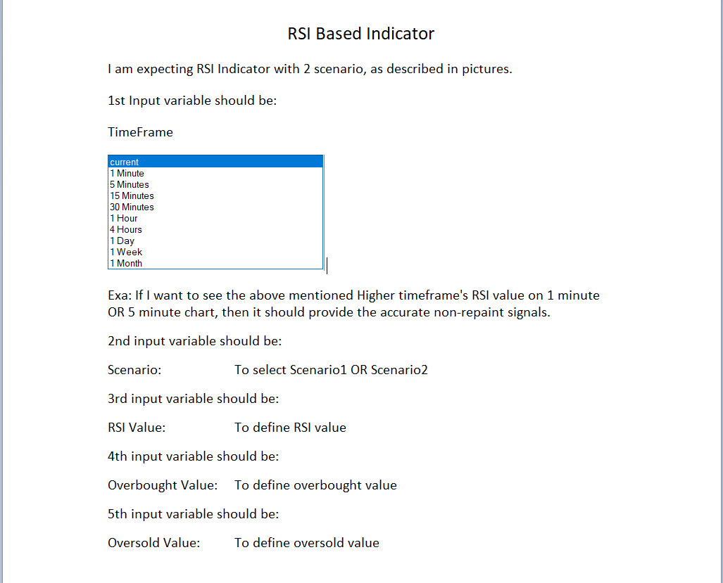 I am expecting RSI Indicator with 2 scenario, as described in pictures.