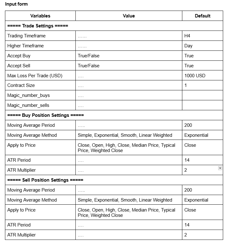 • 1 bot can trade different assets and 1 asset in different timeframes at the same time in 1 account (Recommend: Buy_magic_number and sell_magic_number)