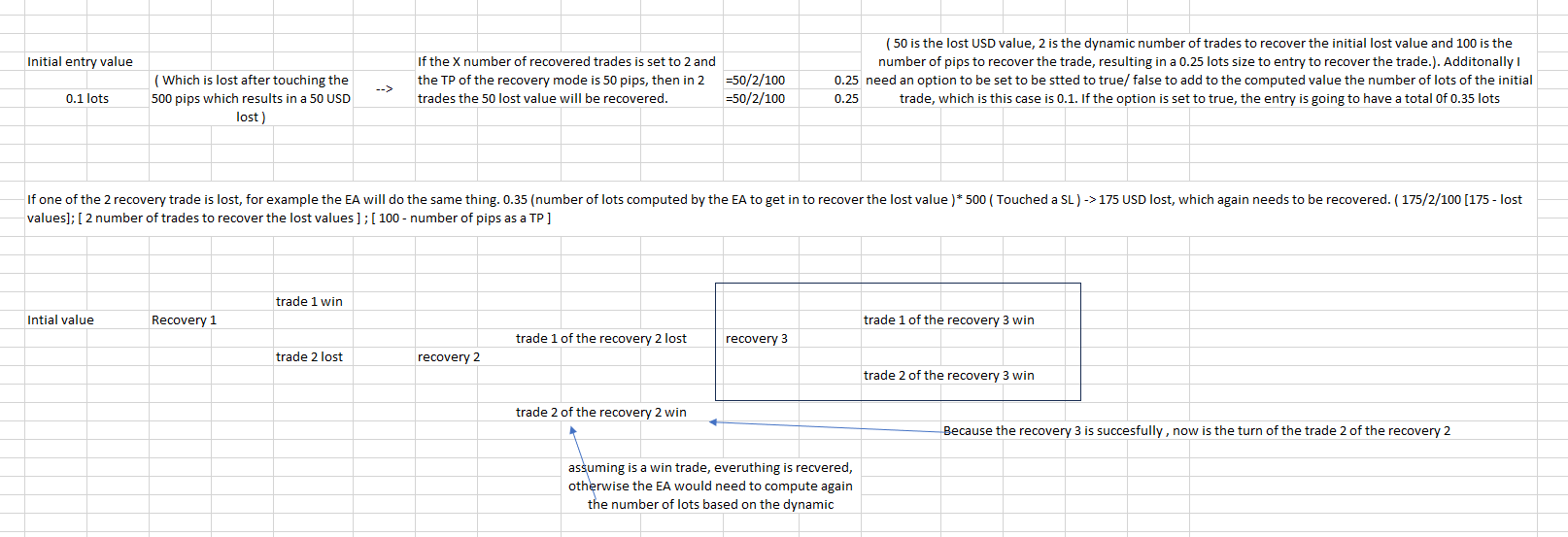When a trade is loosed, then the value is going to be recovered by entering a X number of trades ( where X is going to be a dynamic number set by me ) and the EA needs to be able to calculate the value of the lots size to entry to recover the trade lost.
