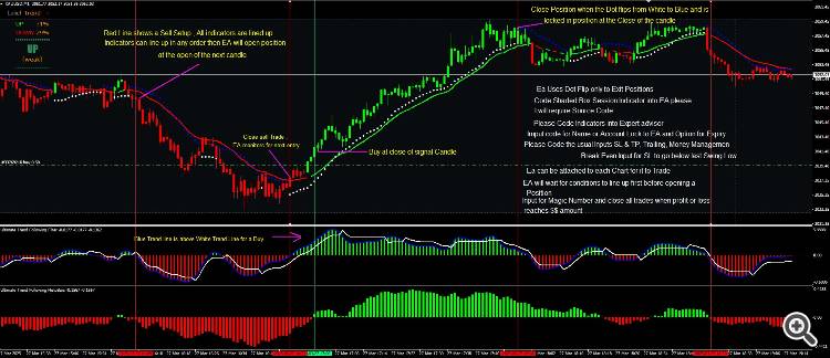 To be Clear when ever all the indicators line up in all windows the EA will open a trade at the close of the candle that locks in the conditions of entry BUT when the EA is attached to the chart it will wait for the next valid entry in the opposit direction if conditions are already met.