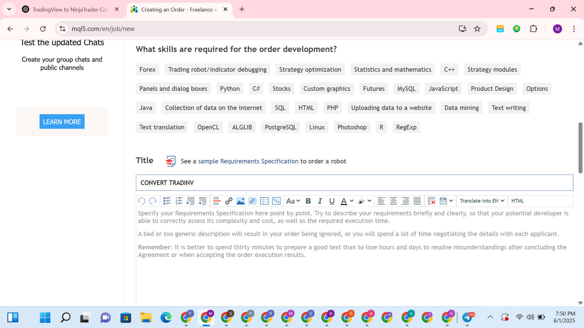 I’m currently using two specific indicators on TradingView that I find very beneficial. However, I primarily trade using NinjaTrader and would like to adapt these indicators for that platform. Additionally, I have a few modifications in mind that I believe would enhance their functionality to suit my trading strategy better.