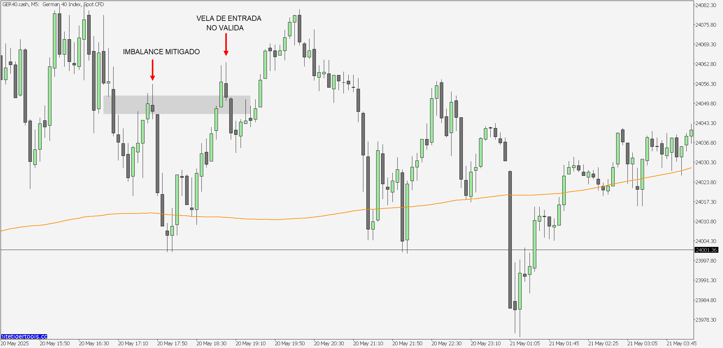 Si el precio ya ha mitigado el imbalance ya no se toma entrada como en este ejemplo