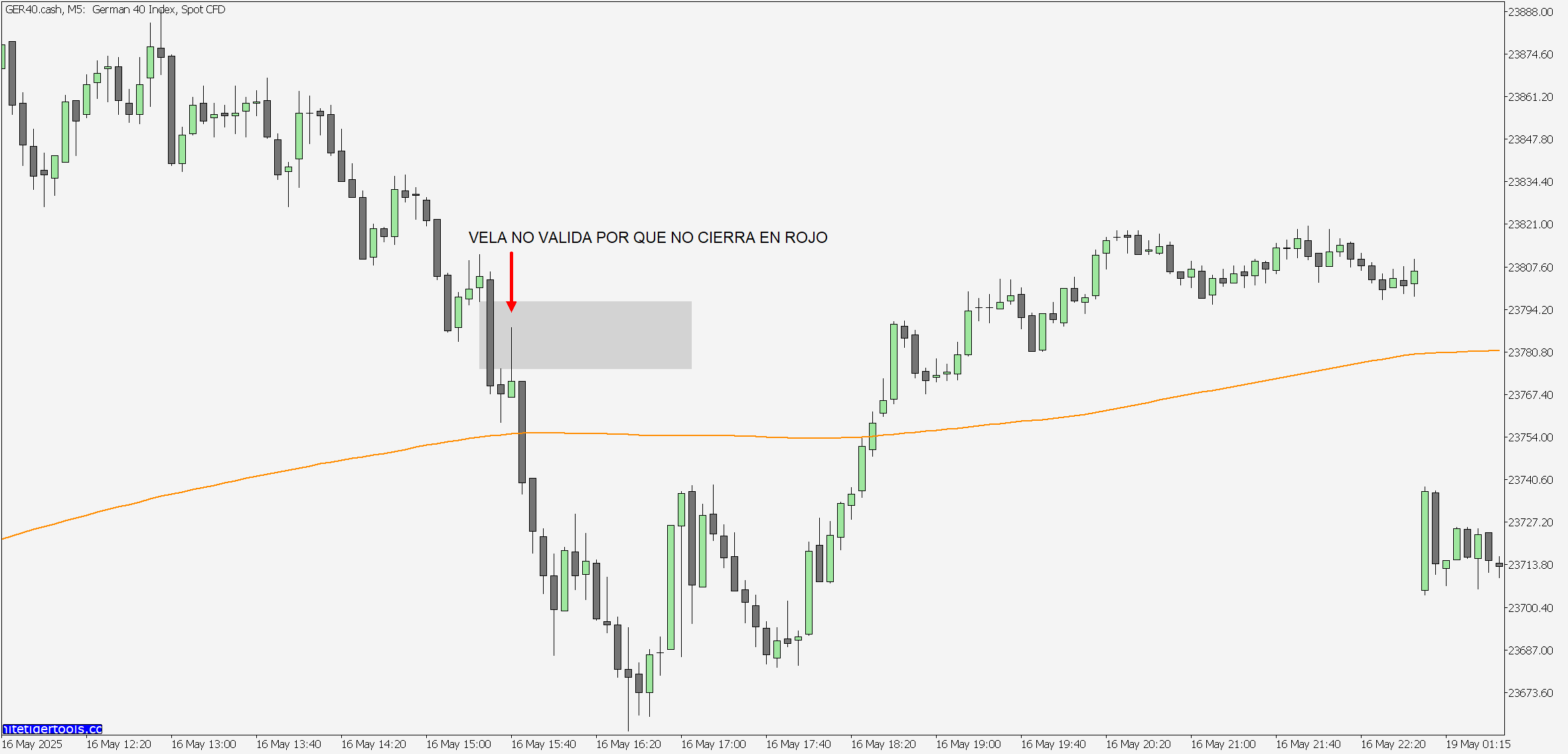 Se entra en la operación 2 segundos antes de la vela del cierre de la vela de entrada.