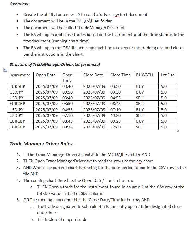 I would like to build a MT5 bot that reads a CSV file for it's signals.