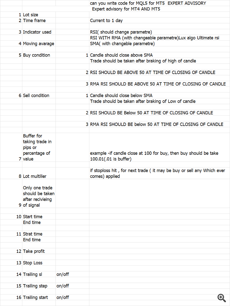 I have my own indicator and needs to create EA expert working smoothly with it to hit the targets as defined in indicator: Technical approach: - The EA will read the indicator signals using Copy Buffer on the selected timeframe - The EA should hit indicator variable targets factor -Auto-Entry: Instant execution when the signal appears. -Alerts: Mobile Push Notifications + Pop-up alerts. -Money Management Auto-lot