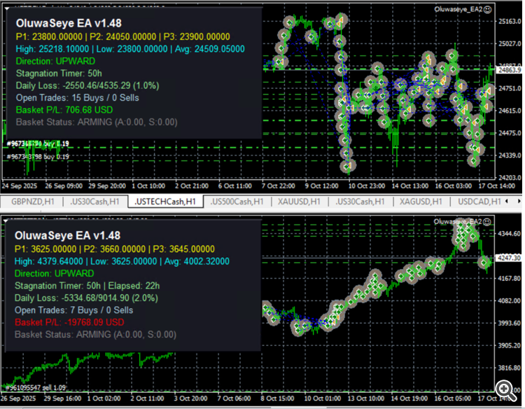If however price reverses to the lower of the 2 direction prices (FOR A BUY), and return back UPWARDS again, then EA will restart a new set of BUY bids UPWARDS again. Same condition will apply for a SELL if price goes UPWARDS above the higher of the 2 LOWER PRICES and reverts DOWNWARDS