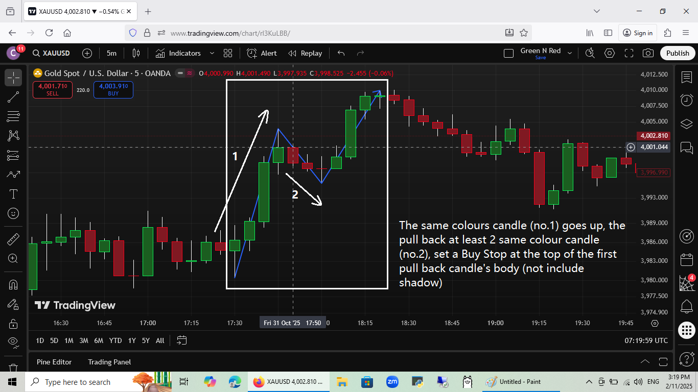 -          Use the top body (not include shadow) of the pull back candle as entry point