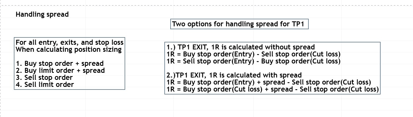 Respect spread (Bid/Ask). No “mid price” assumptions.