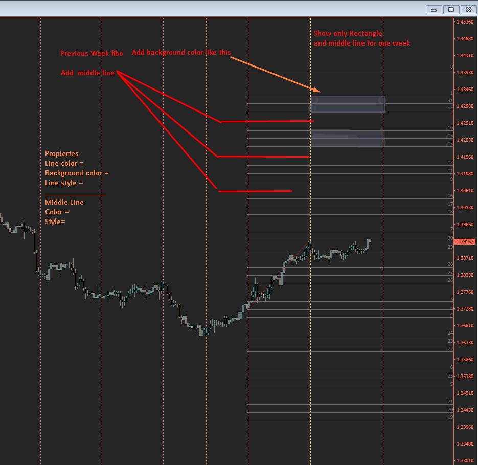 last fibo week new = Color filled and add midle line , show the rectangle only for the current week.