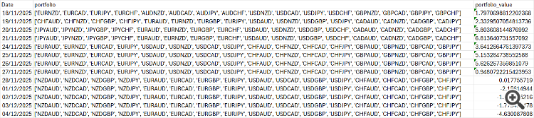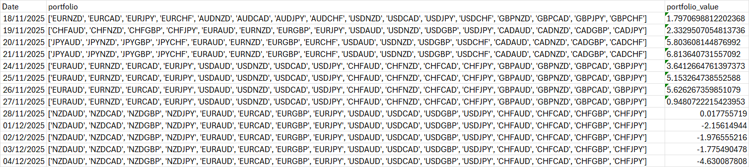 | 24/11/2025 | ['EURAUD', 'EURNZD', 'EURCAD', 'EURJPY', 'USDAUD', 'USDNZD', 'USDCAD', 'USDJPY', 'CHFAUD', 'CHFNZD', 'CHFCAD', 'CHFJPY', 'GBPAUD', 'GBPNZD', 'GBPCAD', 'GBPJPY'] | 3.6412664761397373 |
