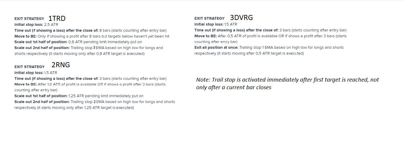 Please take a look at the attached picture that explains the details of 3 auto-exit strategies. If you have any questions please let me know. (ATR stands for Average True Range (14) indicator's last value).