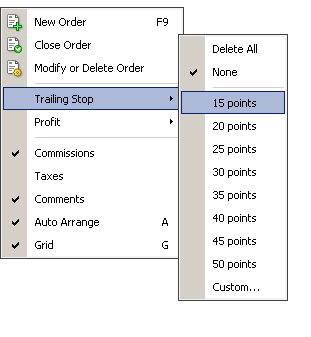Right click on current order, select Trailling Stop and then Select the number of point as the attached image