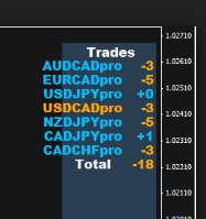 - Show P/L in pips of open positions per symbol in Bottom right corner of chart