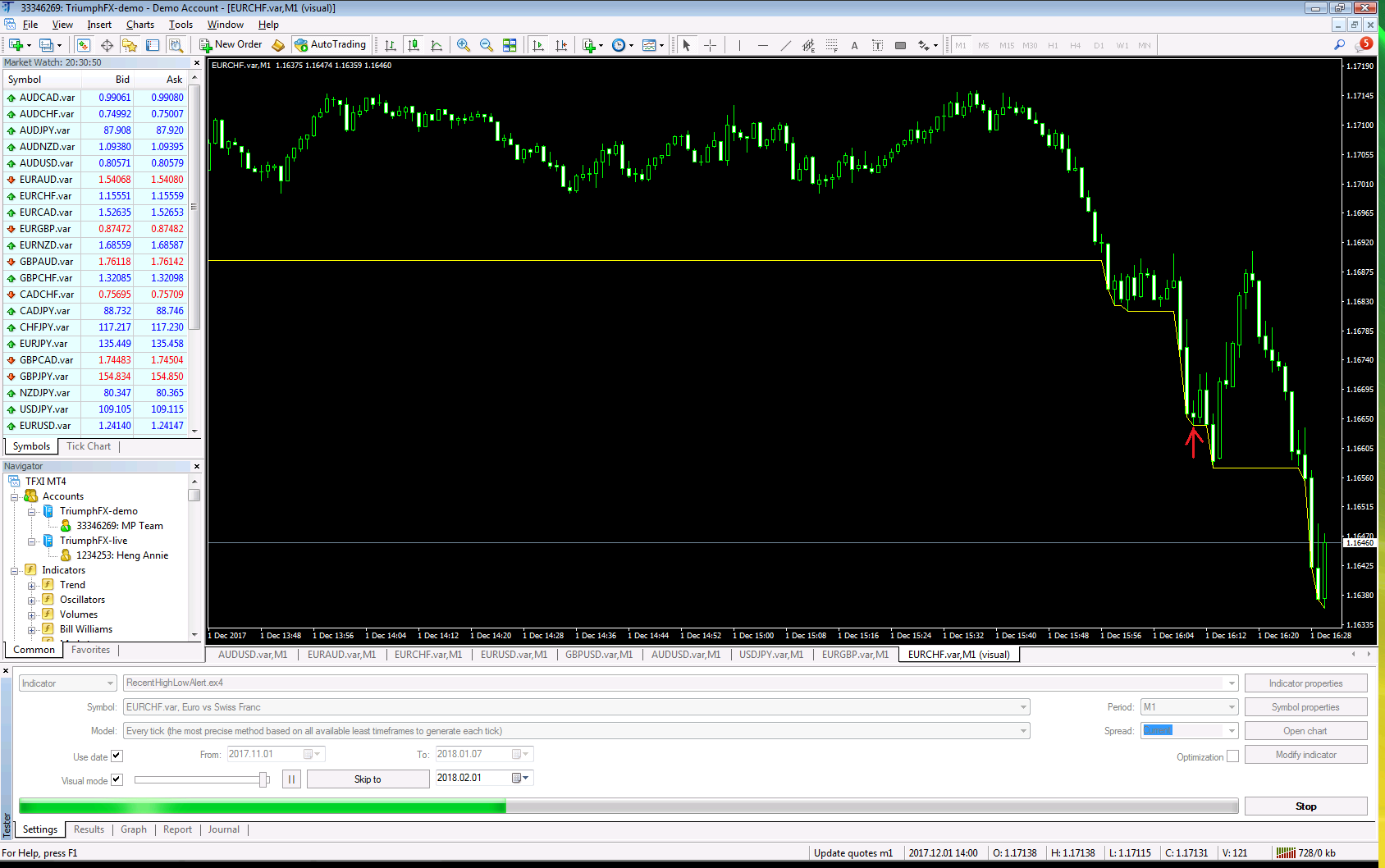 1) when a candle has wicks at both sides, the wick that touch hi/lo line must shorten than the opposite side of wick, both sides wick minimum 2 pips. Alert pop up and draw arrow when found this kind of candle. Reference at picture below :