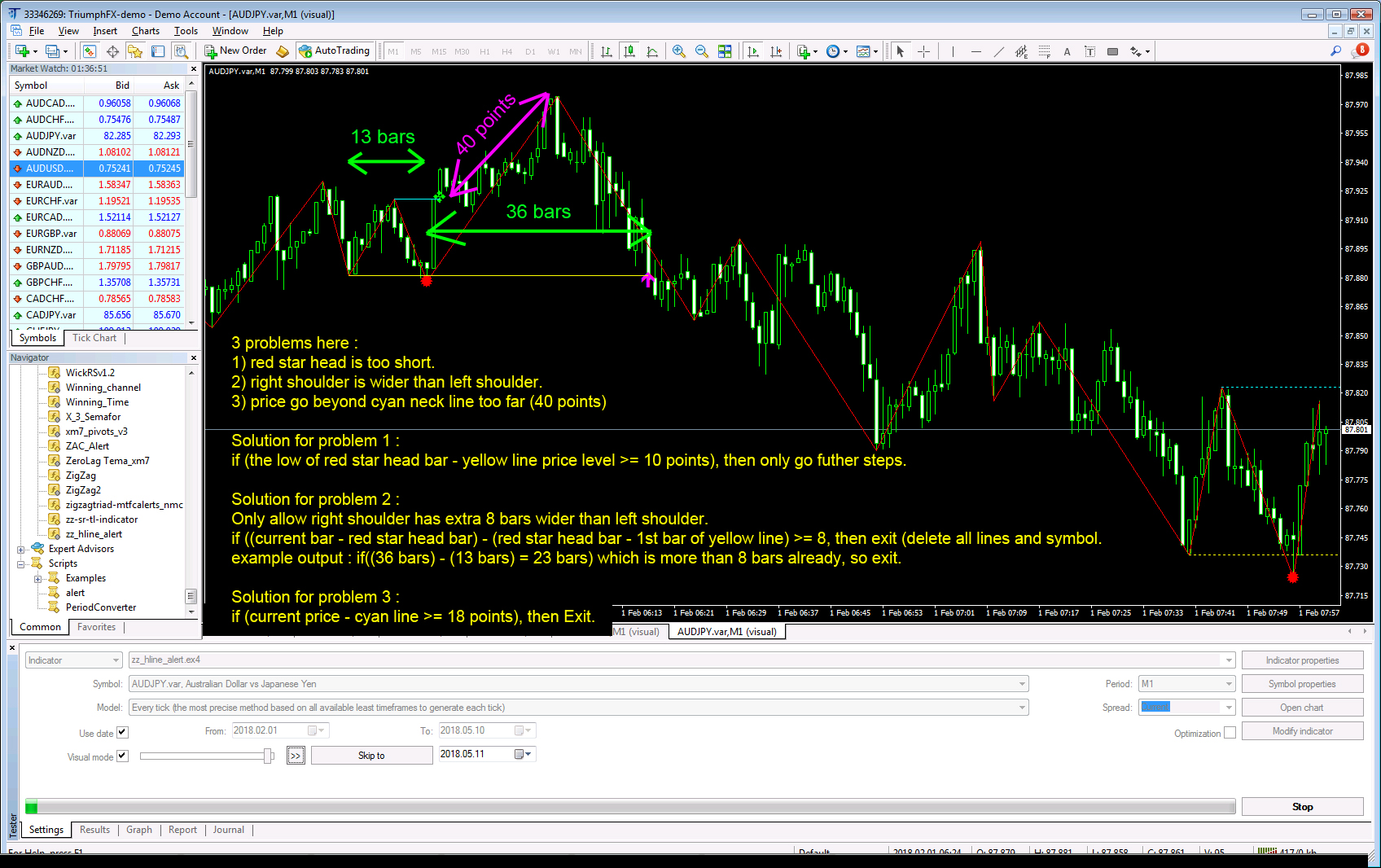 if (the low of red star head bar - yellow line price level >= 10 points), then only go futher steps.