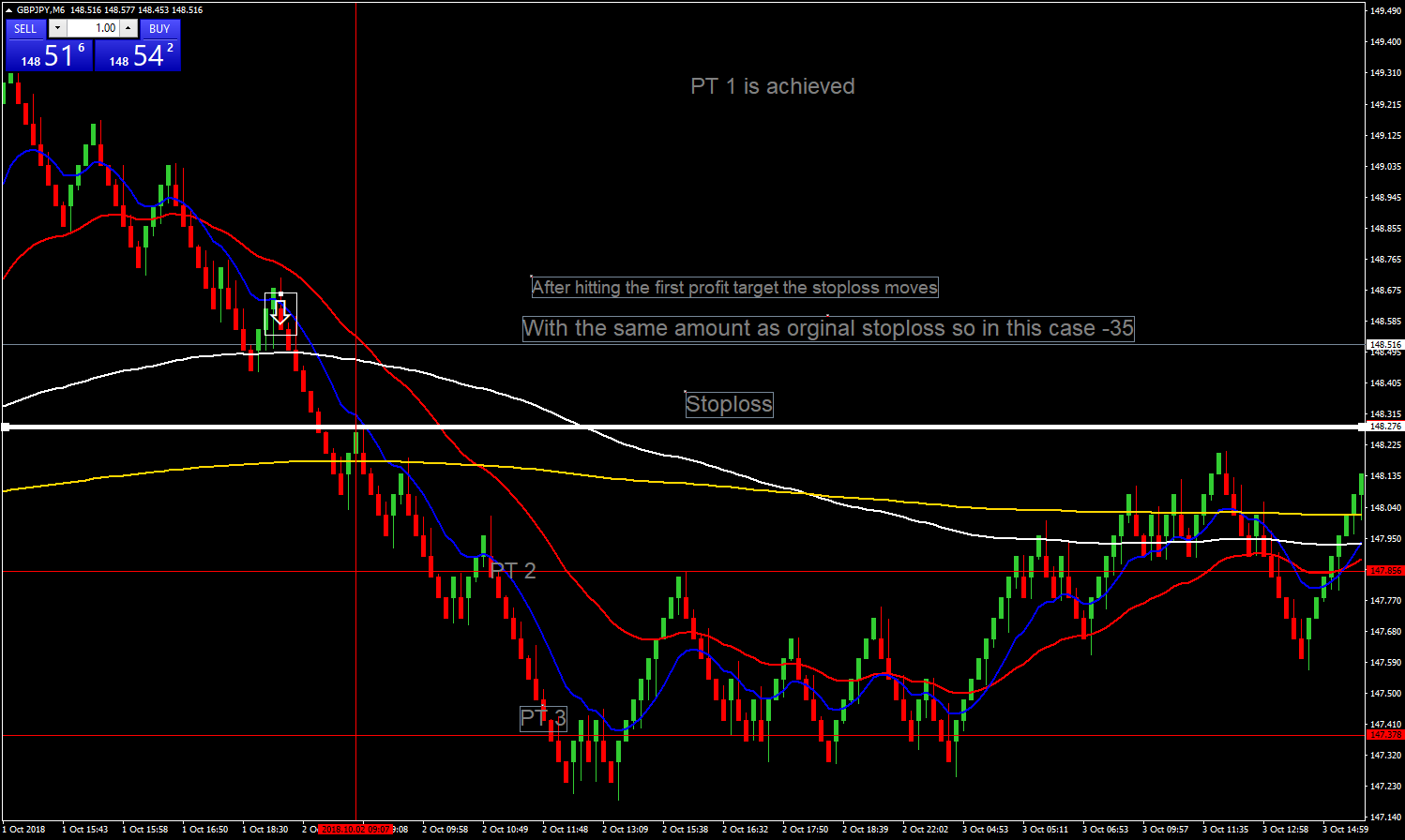 So basically the beginning is always with 3 PT instead of 2 PT, the stoploss is moving after hitting a profit target