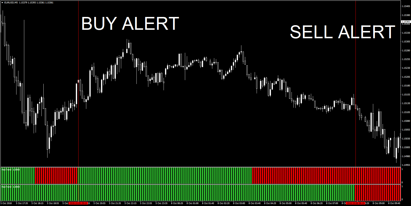 It should give alerts: mt4 pop up+sound/email/push mobile.