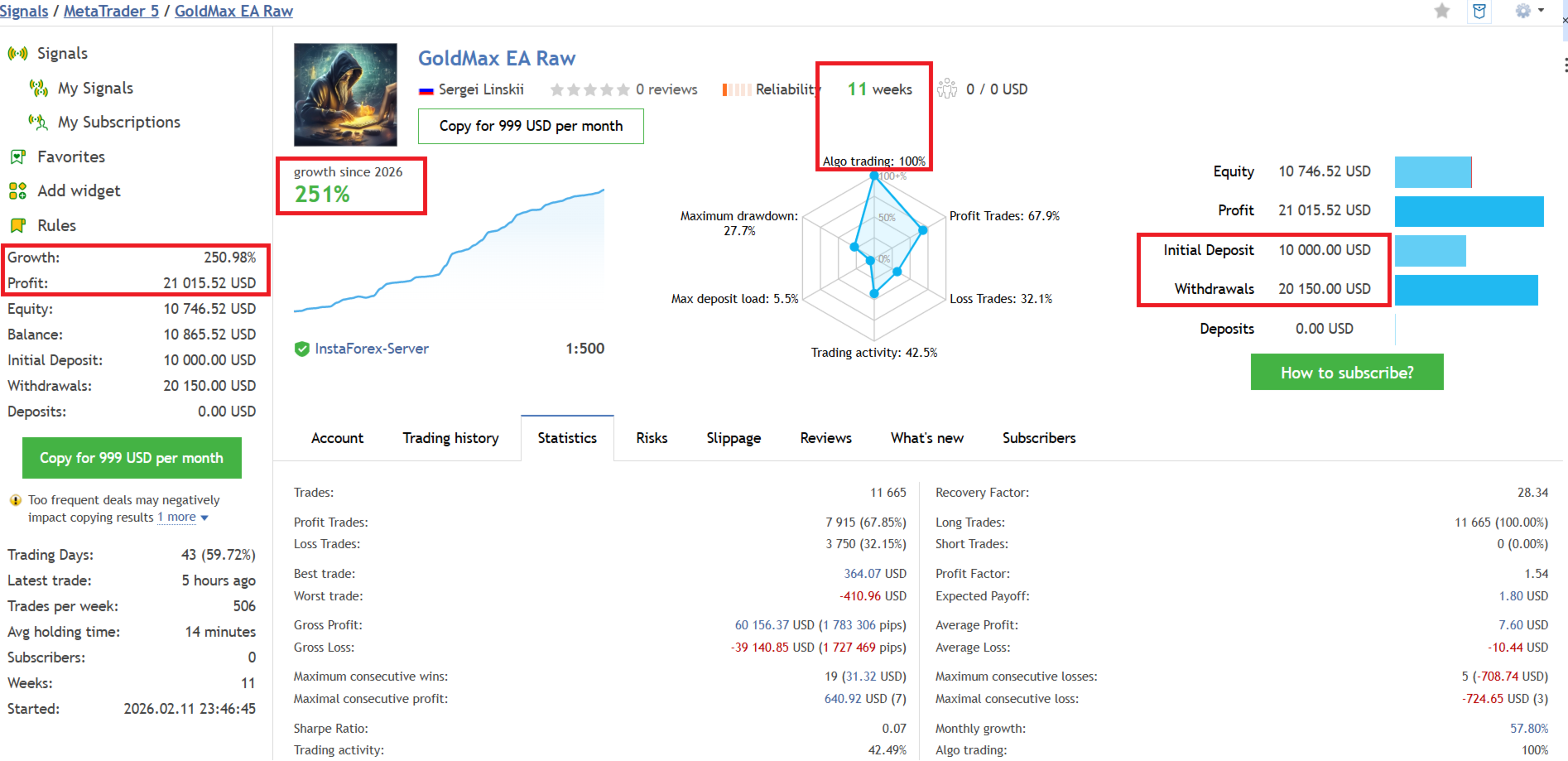 - Trading mode - VPS (24/7)