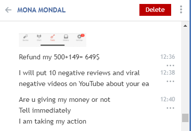 Here is the proof attached that you blackmailed me to get money from me. Even tho previously you were very happy and were talking about positive reviews