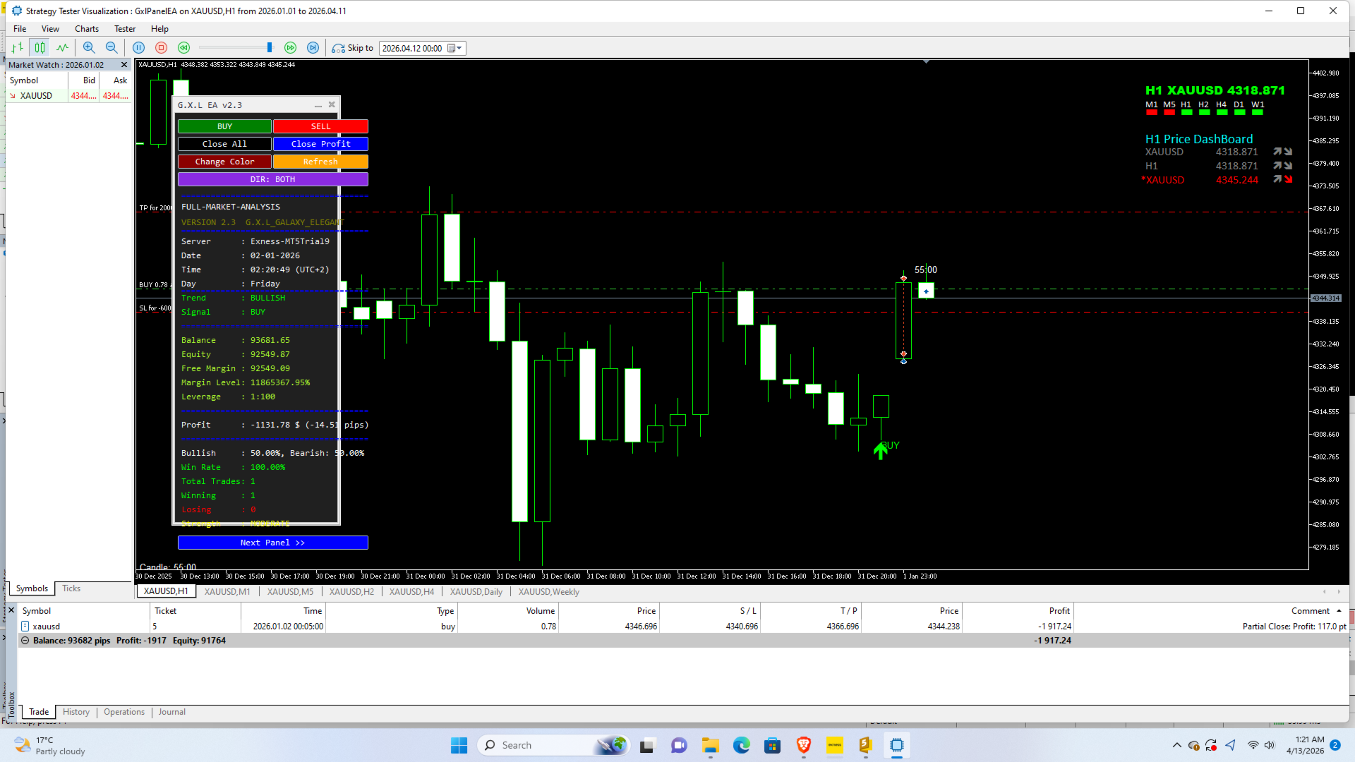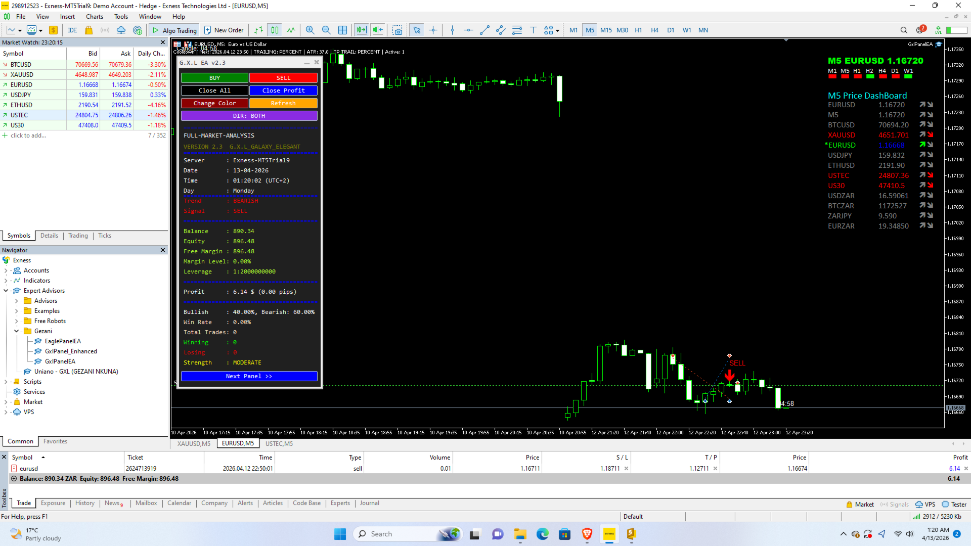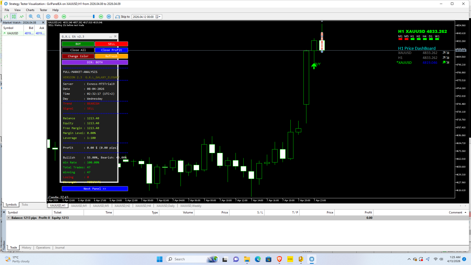 G.X.L is an automated trading robot for MetaTrader 5 that operates based on price action analysis. The system processes real-time market data to identify trading opportunities. It provides information and recommendations aligned with user-defined trading preferences.