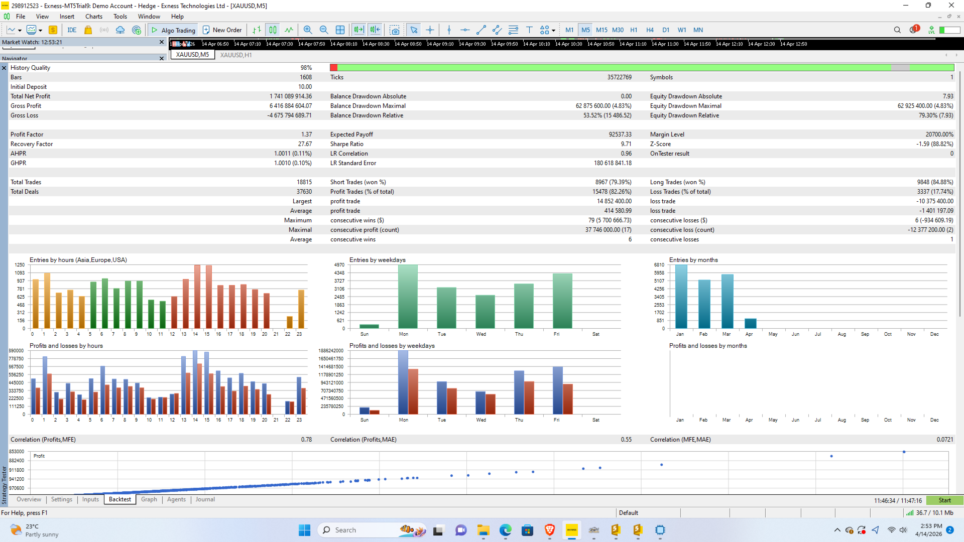 An on-chart panel displays: