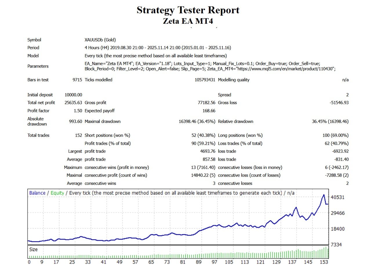 The last optimized of Zeta EA MT4 version 1.18 has been done on 24 November 2025. The optimization in many functions and strategies has been done.