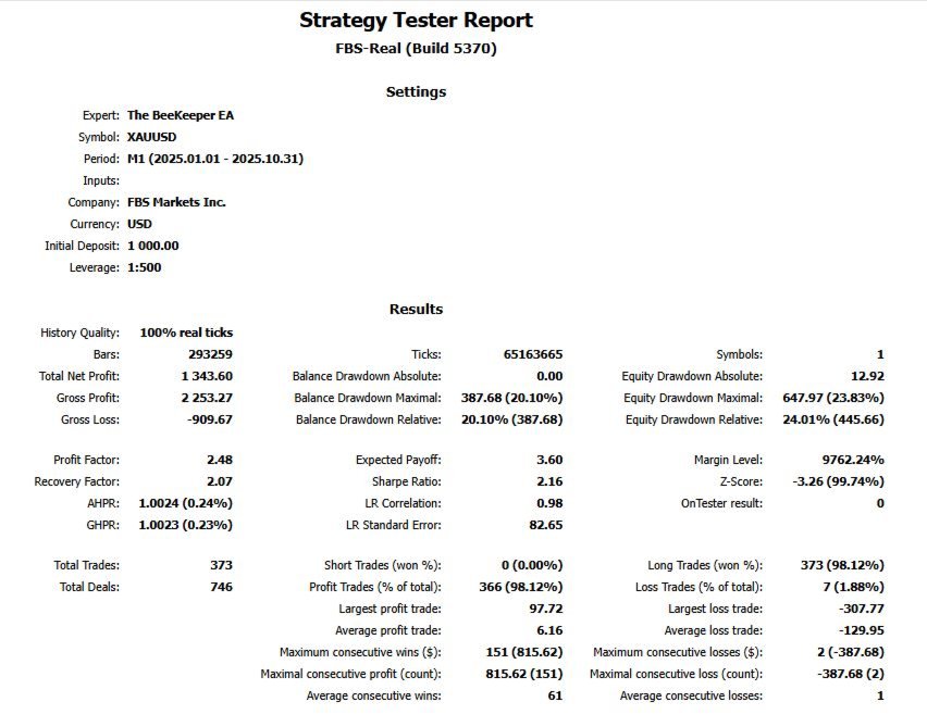 BeeKeeper combines smart logic, adaptive scaling, and disciplined money management — delivering a trading experience that’s both profitable and protective.