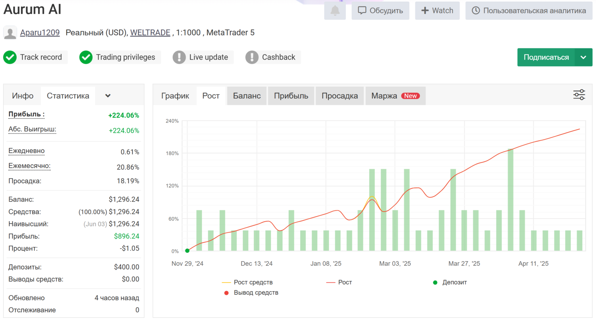 Experience the full potential of technology in trading! Aurum AI is a groundbreaking expert advisor designed for stable and secure performance in the gold market. It combines the power of artificial intelligence, precise trend analysis, and strict risk control to make every trade as effective as possible.