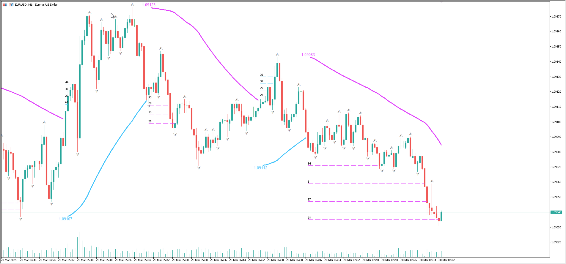 - Observe Trend Change Points: Utilize the triangles and price labels to quickly spot significant trend changes.