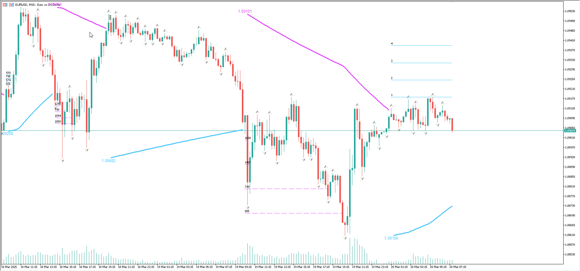 - Analyze Deviation Levels: Monitor deviation levels **1–4** to identify potential breakout points and assess the degree of price deviation from the entry point.