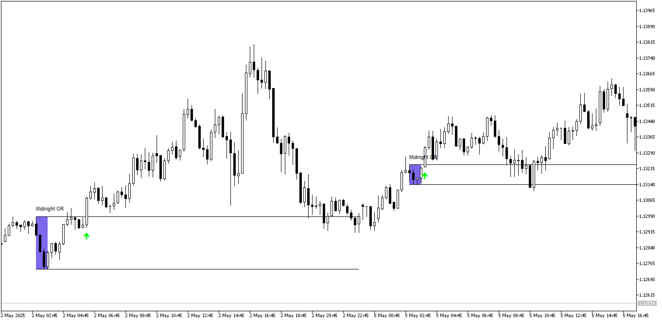 This indicator performs well on major Forex pairs such as EURUSD, GBPUSD, USDJPY, and USDCAD. These pairs exhibit predictable volatility around global session opens and are commonly targeted by institutional liquidity providers.