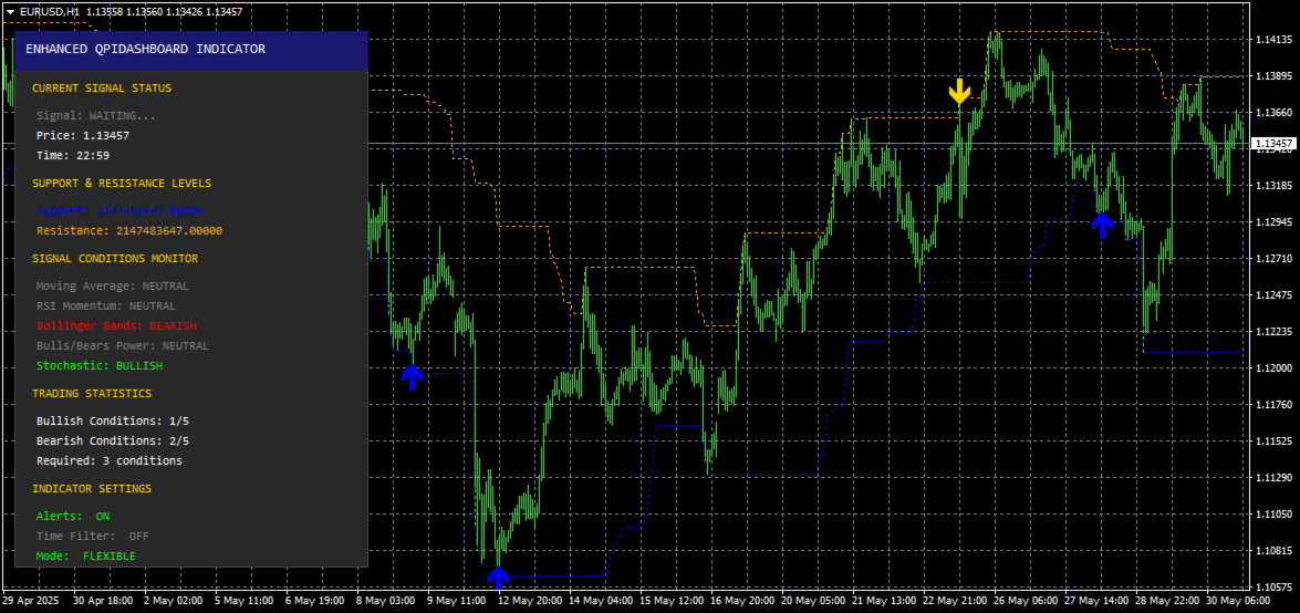 The Enhanced QPI Dashboard is a sophisticated technical analysis indicator designed for MetaTrader 4 that combines multiple proven trading signals into one comprehensive system. This professional-grade indicator features a real-time dashboard interface that monitors market conditions and generates high-probability trading opportunities through advanced multi-timeframe analysis.