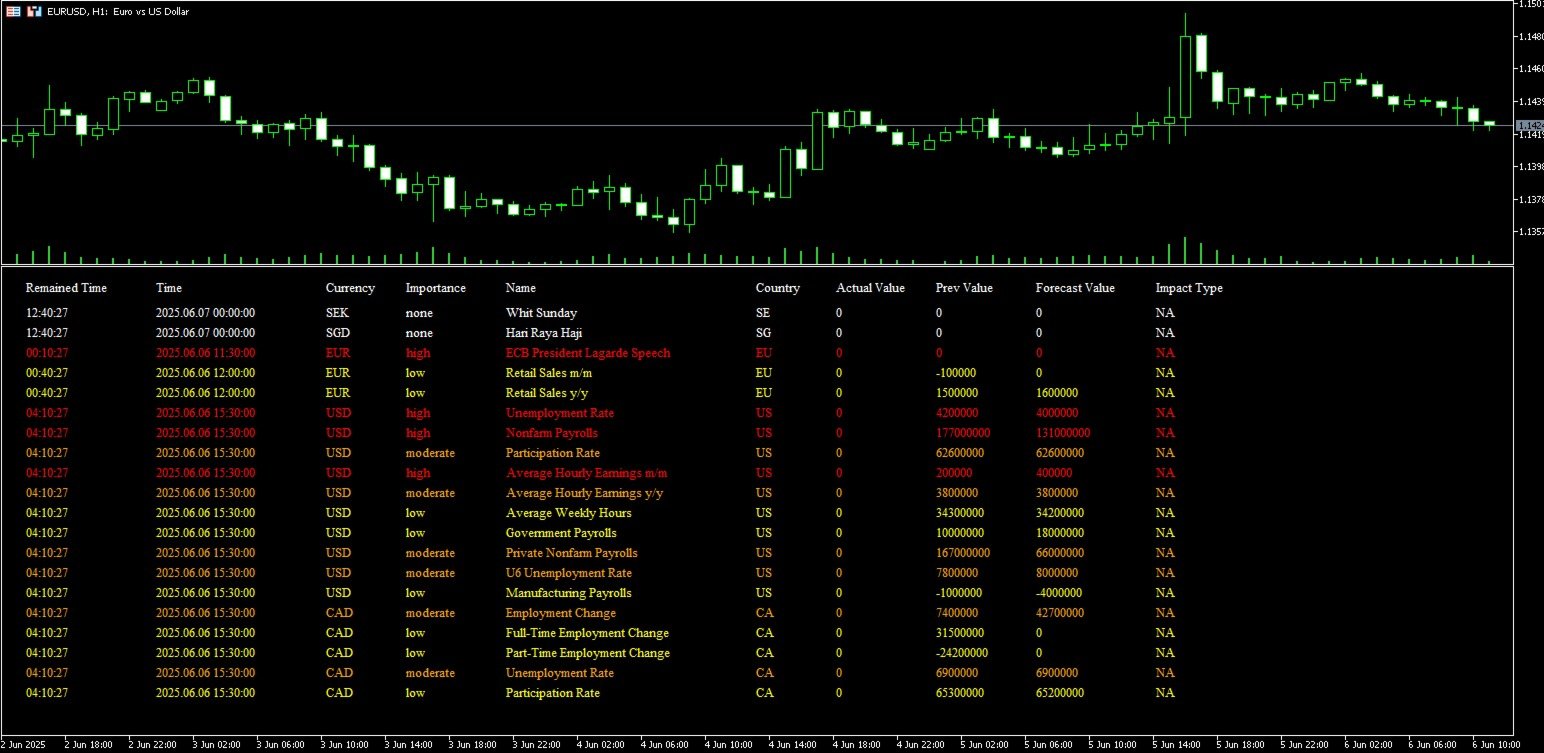 - Separate Window for Clarity: The indicator appears in a dedicated window below your main chart, keeping your price action clear while making news events easy to track.