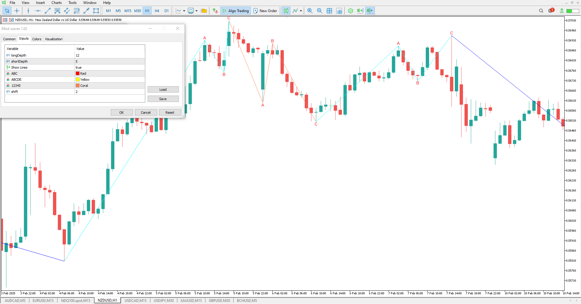 By examining price behavior, the Elliott Waves Indicator becomes a strategic asset for traders, detecting impulsive 12345 waves, combination patterns such as ABCDE, and corrective ABC waves—visually representing them on the chart with lines.