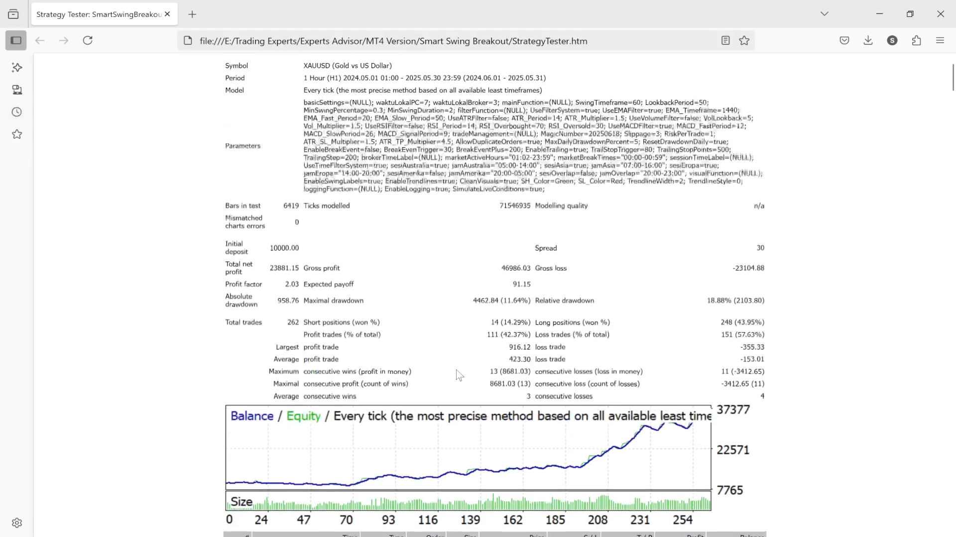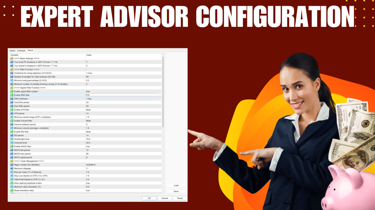This Expert Advisor is built on a swing structure breakout strategy — ideal for traders who love price action and clean risk management.